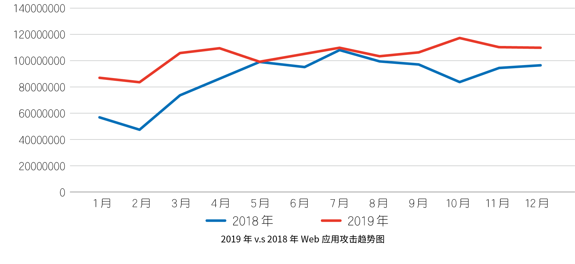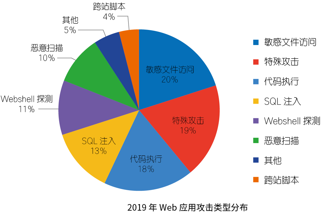 2019年上海云盾安全运营中心监测到Web应用攻击12.6亿次,同比上升 20%。