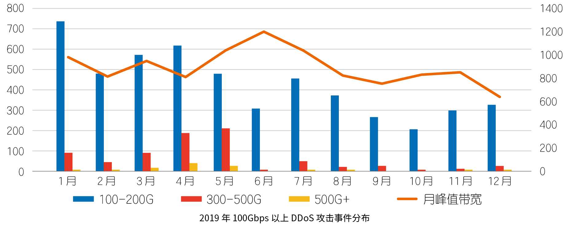 超过300Gbps的DDoS攻击占比超15%,月平均峰值带宽接近1Tbps。