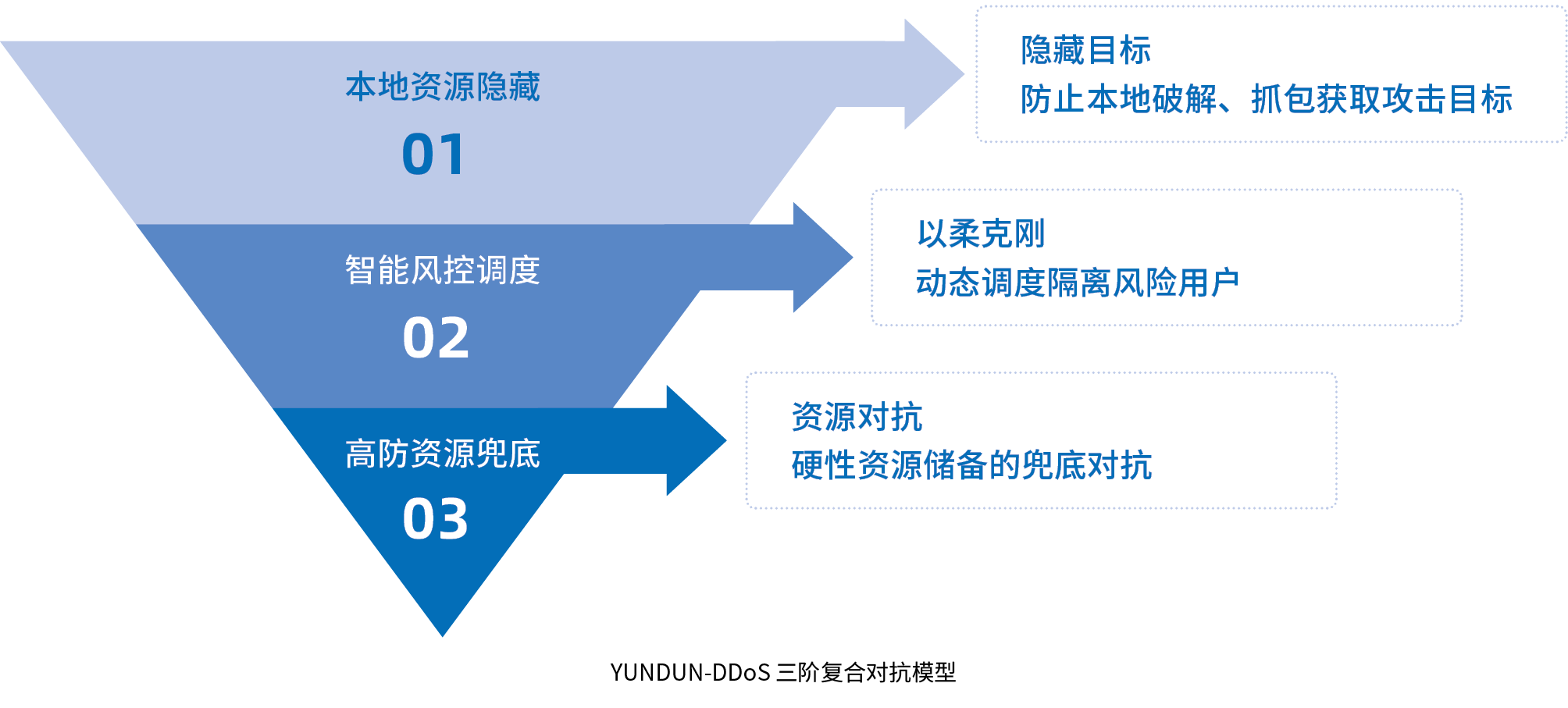 随着攻击数量级不断提高,整个安全行业都致力于在资源不对等的情况下完成面向最终客户业务的防御模式创新。上海云盾创新三阶复合对抗模型,助力客户从容应对互联网新环境。