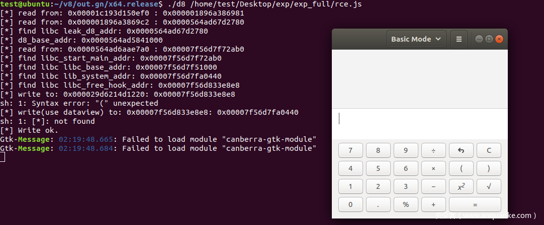 得到d8基址和__libc_start_main的offset后,就可以在代码中读取内存中的libc_start_main_addr函数地址,接着通过IDA计算得到libc_start_main相对于libc-2.27.so基地址的偏移,这样我们就可计算得到libc库在内存中的基址。随后在其导出表查找free_hook、system这两个函数的偏移,并加上libc在内存中的基址,就可得到free_hook、system两个函数在内存中的地址。