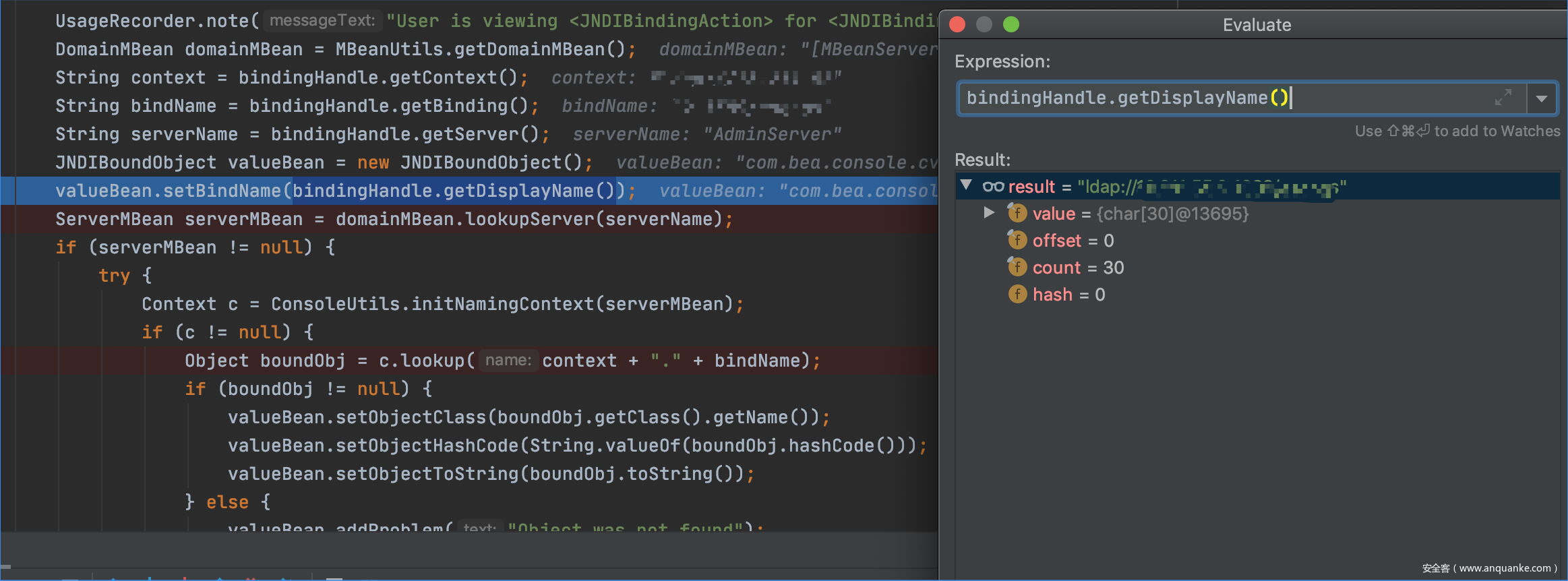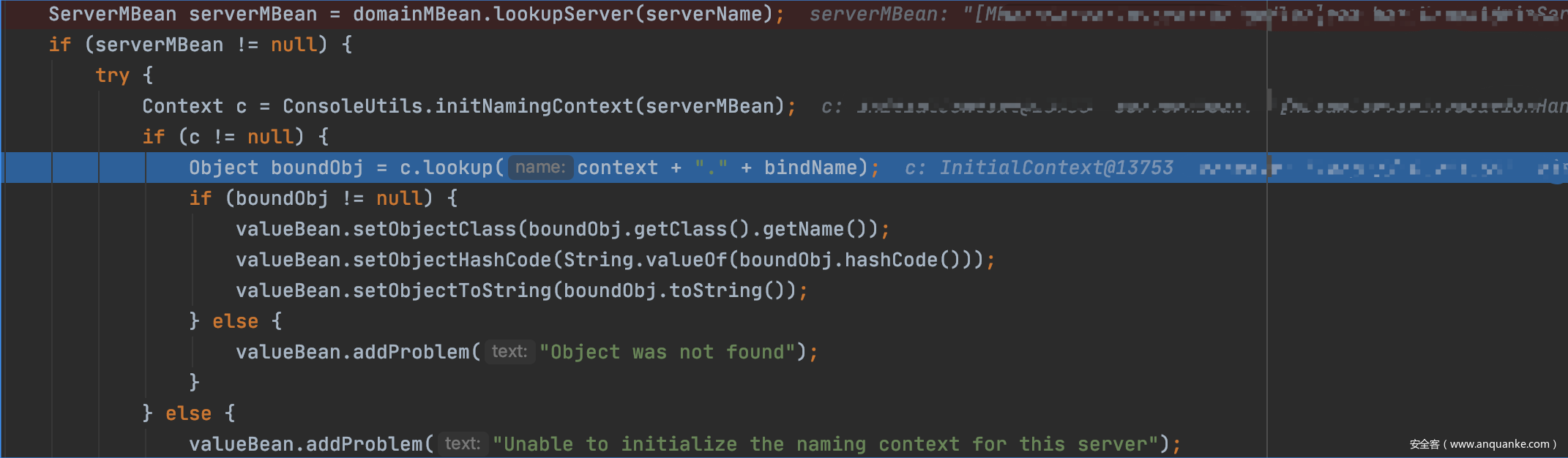 这里的context, biding, server连起来拼成了ldap://x.x.x.x/classname 的地址,servername则是 AdminServer。ser