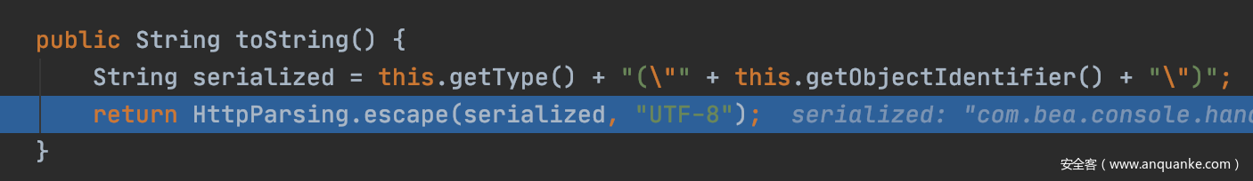 进入后在toString()方法中生成字符串做了格式转换,可以放到URL中。