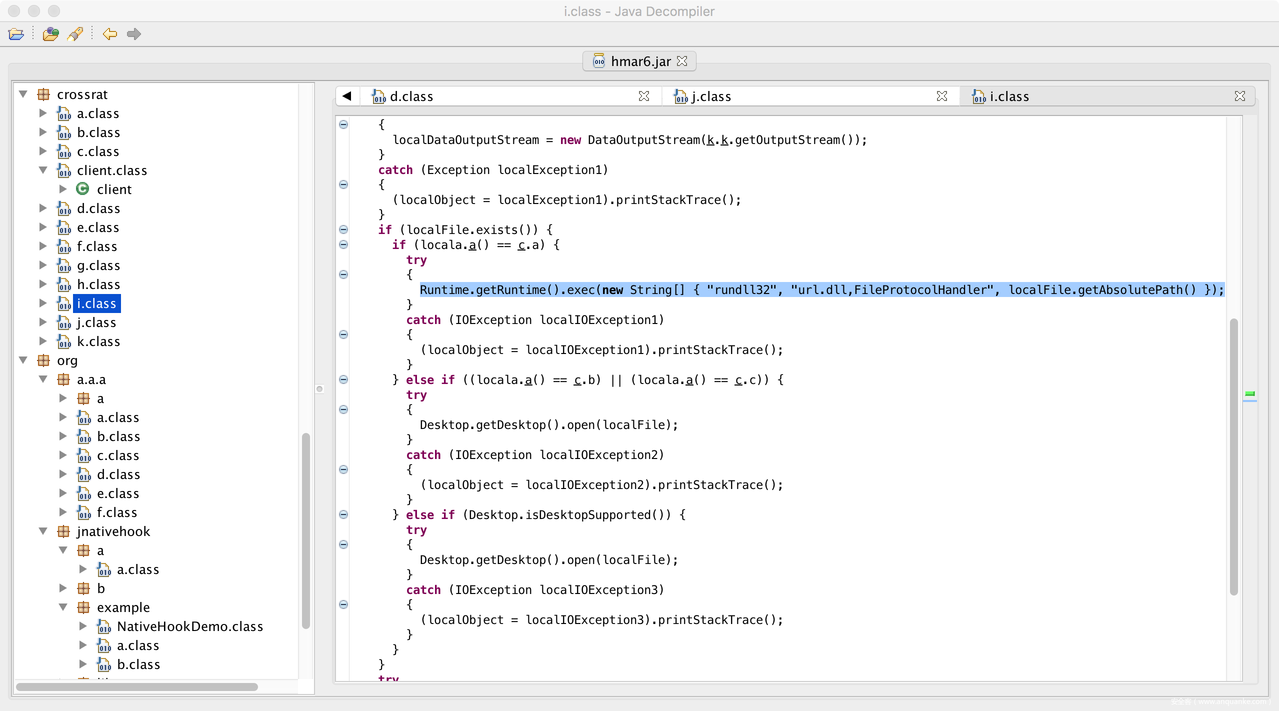 另一个有意思的命令是“0009”,当恶意软件从服务器端接收到这个命令之后,它会初始化一个’i’对象,该对象实现在crossrat/i.class文件之中: