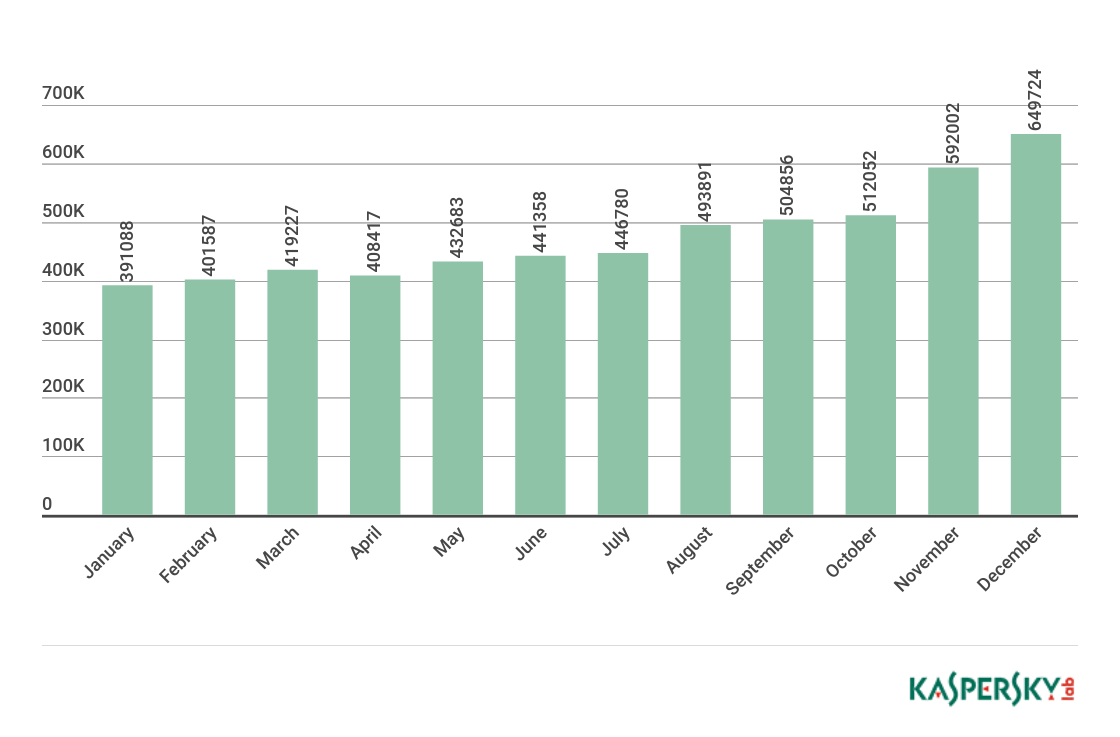 结果表明,许多网络犯罪团伙已经转向恶意挖矿者,加密货币矿工的用户数量所急剧性增加,到2017年底,我们发现,有270万用户受到矿工的恶意袭击 – 这比2016年(1.87亿)高近1.5倍。