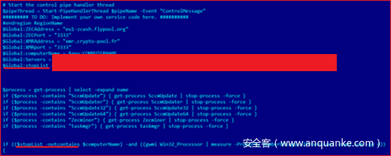 启动后,它将检查该端点是否属于特定帐户,即高级级别或信息安全人员。如果这是真的,那么脚本就不会执行这个矿。