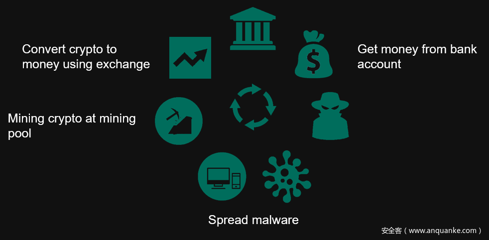 首先,矿工和勒索软件都有明确的货币化模式。 在使用勒索软件的情况下,攻击者感染PC,解密文件并收取用户的赎金。 矿工模型的简单性非常类似:攻击者感染受害者,再用CPU或GPU进行挖矿,并通过法律交换和交易赚取真金白银。