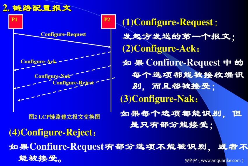关于在协商数据链路配置阶段可能出现的报文,我给大家找了一页 PPT