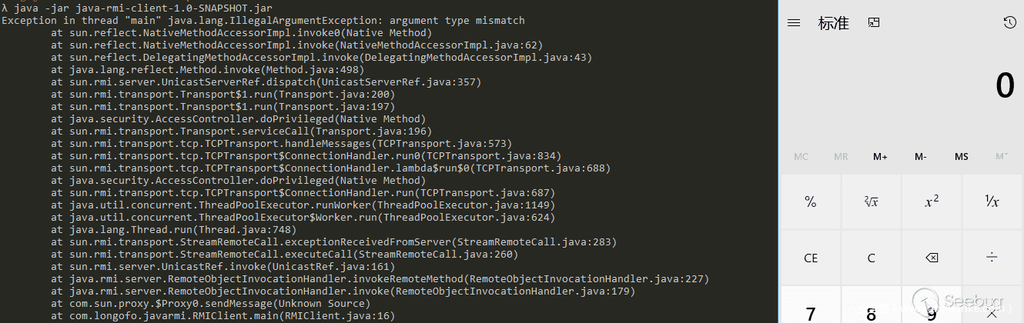上面这个例子是在CVE-2017-3241分析[3]中提供代码基础上做了一些修改,完整的测试代码已经放到github上了,先启动RMI Server端java-rmi-server/src/main/java/com/longofo/javarmi/RMIServer,在启动RMI客户端java-rmi-client/src/main/java/com/longofo/javarmi/RMIClient就可以复现,在JDK 1.6.0_29测试通过。