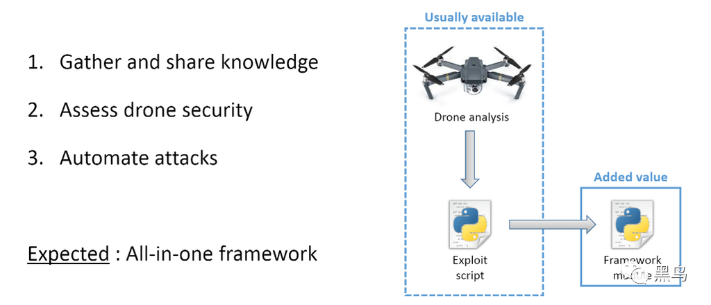 目前市场上最受欢迎的两个无人机品牌DJI和Parrot,虽然有很多开源黑客项目,但它仍然缺乏收集和自动化流程的平台,这也是他们开发这个平台的原因。