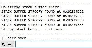 - 栈缓冲区溢出检测,实际只检测了strcpy这一个函数,且也只检查了该函数是否写入栈缓冲区,而并未检查在写入时是否有长度检查等待,这些工作都可以在后续展开