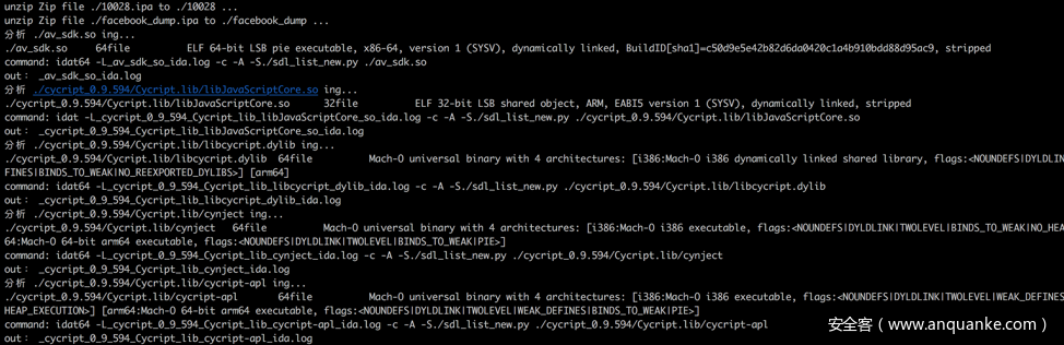 由于IDA pro 支持 x86/x86-64/arm/arm64/mips等文件格式的解析,所以检测脚本也可以支持Android/iOS/macOS/Windows/Linux等众多平台的二进制程序。