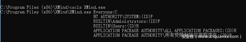 检测方式依赖cacle命令,执行结果如下(手动添加的Everyone权限,非xmind原本就有):