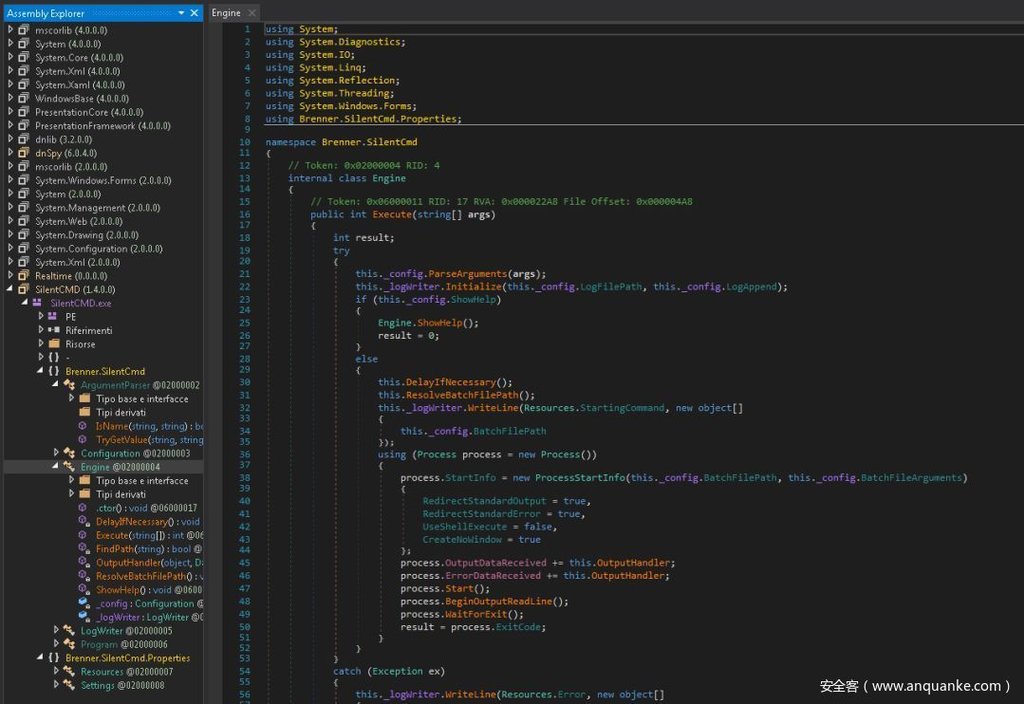 这两个dll是合法的Windows库,用于支持恶意行为。相反,“ windproc.scr”和“ windprocx.scr”文件是实用程序SilentCMD的编译版本,可在GitHub上公开使用。SilentCMD无需打开命令提示符窗口即可执行批处理文件。如果需要,控制台输出可以重定向到日志文件。
