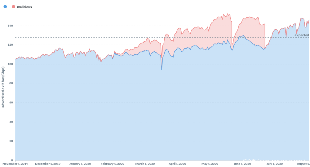 有多个指标表明,超过10%的Tor网络出口中继器处于犯罪集团的控制之中(截至2020年8月8日)