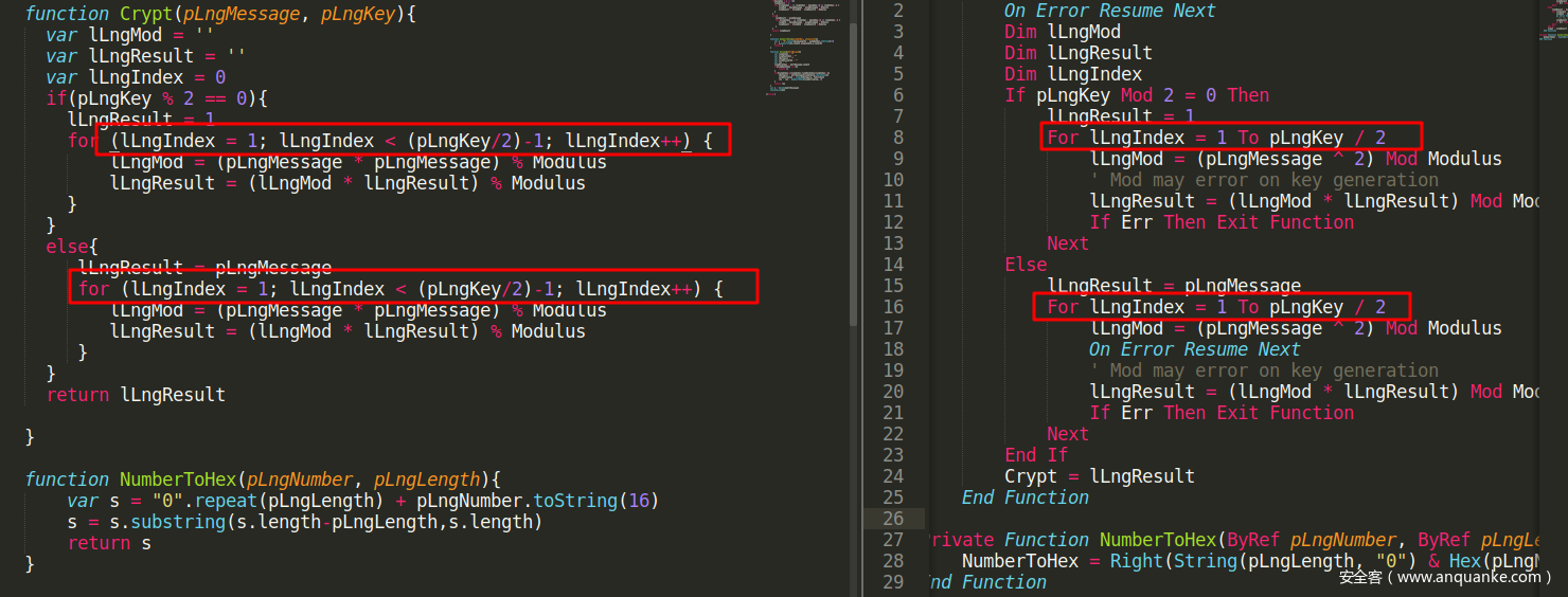 有了服务端,接下来就可以编程序了。我想做的是一个流量加密马,想到流量加密自然想到了 rsa嘛,当场百度了一个 asp rsa 加密。兴致勃勃的将其运行。发现不太对劲,代码如下,有些长可以暂时不看,直接看代码最底下我写了注释那一段即可: