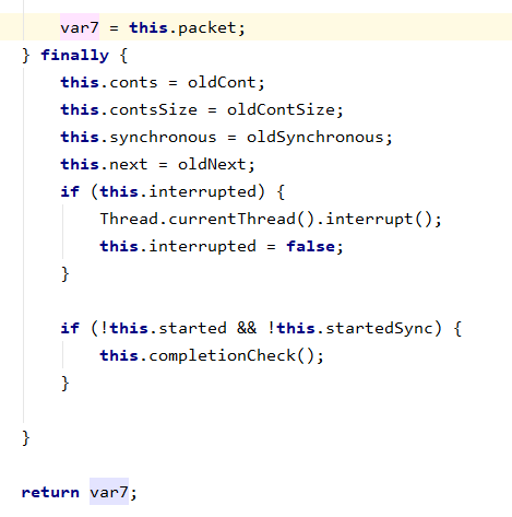 我们看到,这里直接将var7赋值为this.packet,然后再无处理,直到var7被return 成为response,