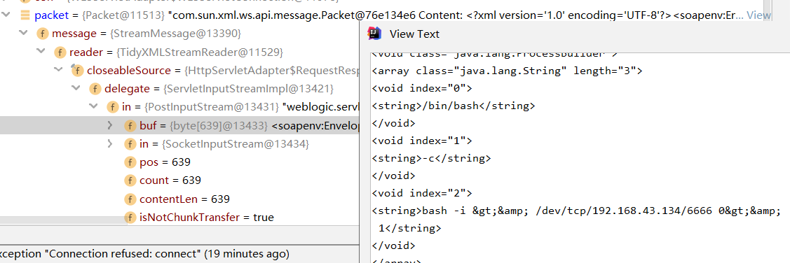 前面我们看到,如果未对传入readObject的xml做过滤,就有可能引发命令执行。下面我们结合调用栈,看一下我们构造好的恶意数据能否绕过可能的防护,进入readObject。