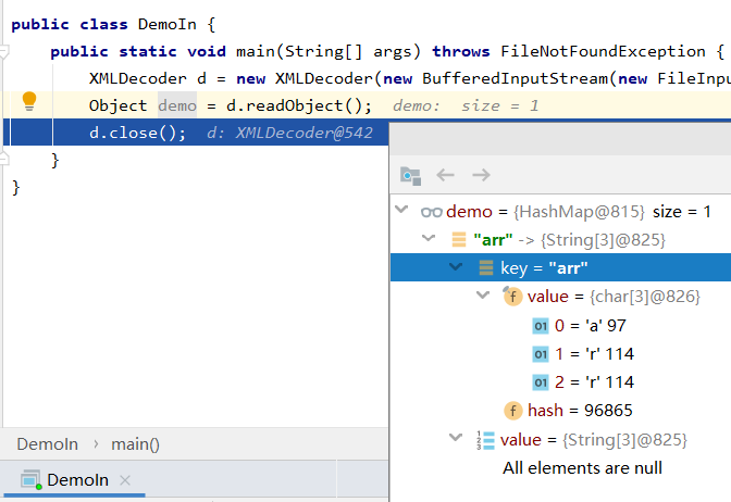 XMLDecoder d = new XMLDecoder(new BufferedInputStream(new FileInputStream("demo.xml")));