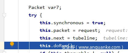 所以,我们应该跟入this.doRun(),其内部可能有对packet的处理,影响var7,进而影响返回值。