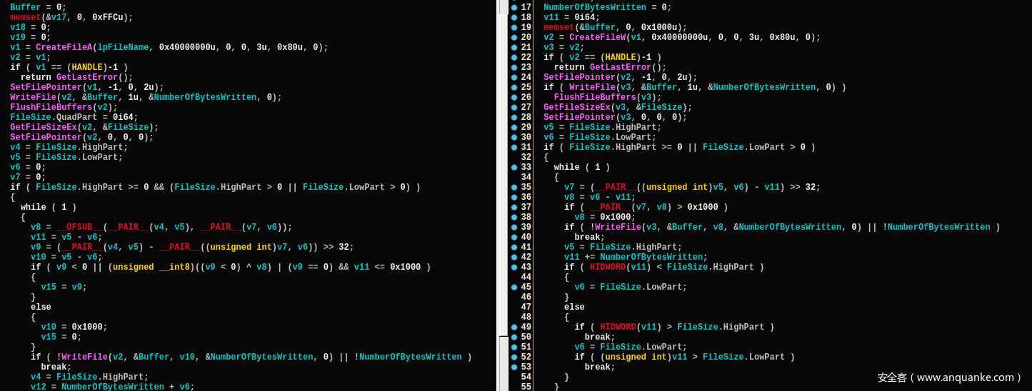 图12. 擦除模块的代码(左图:Bluenoroff工具,右侧:OlympicDestroyer)