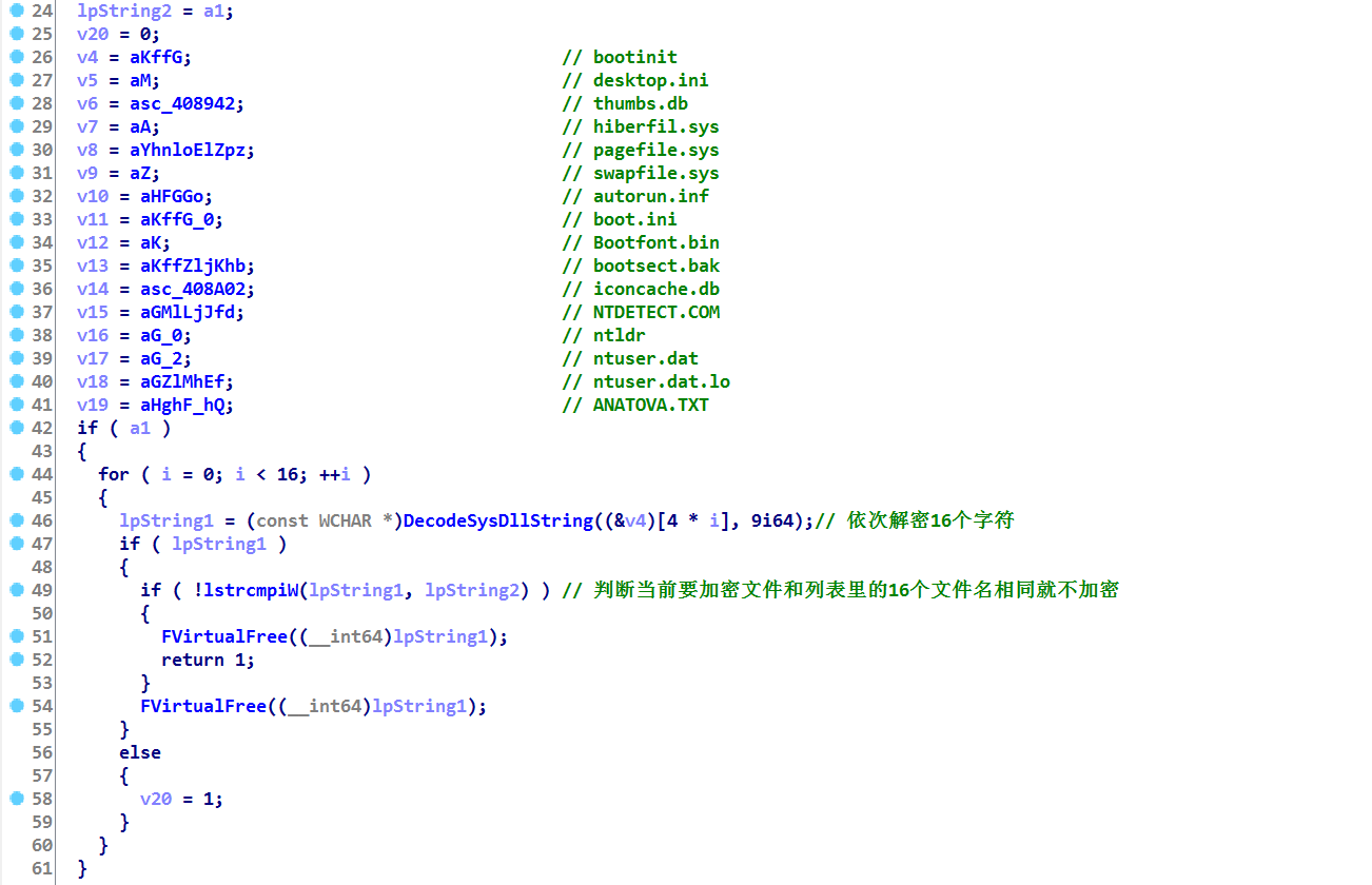 ExcludeFilePath函数检查并排除列表中16个文件的加密