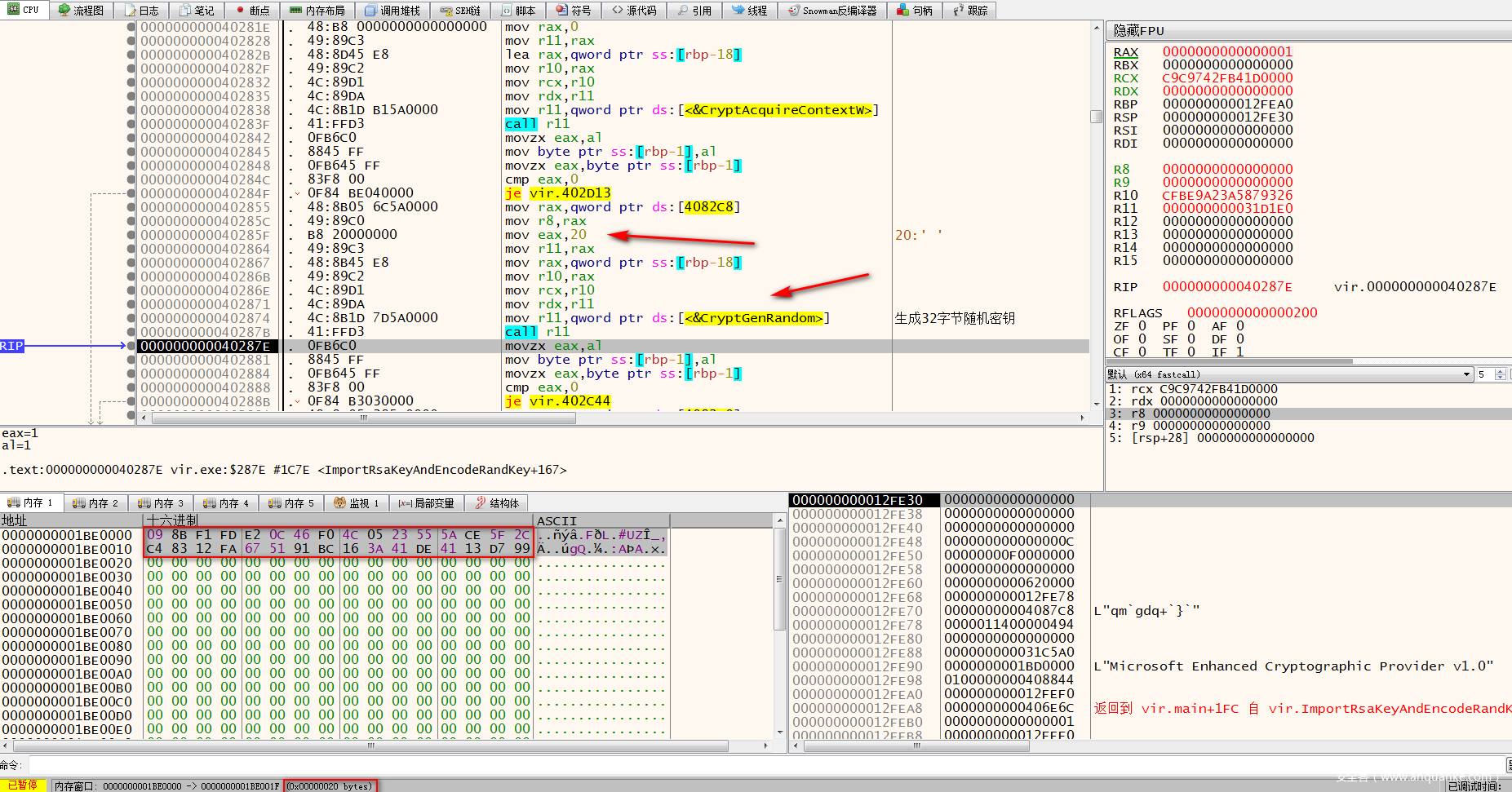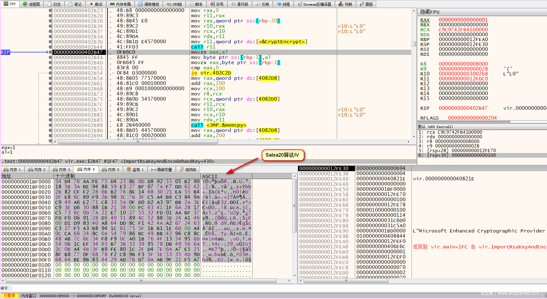 调用CryptGenRandom生成32字节随机密钥当作Salsa20算法key