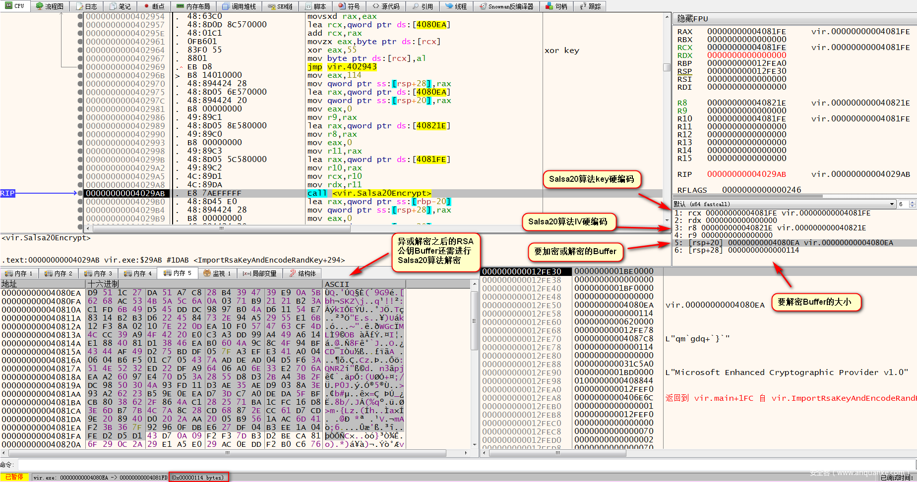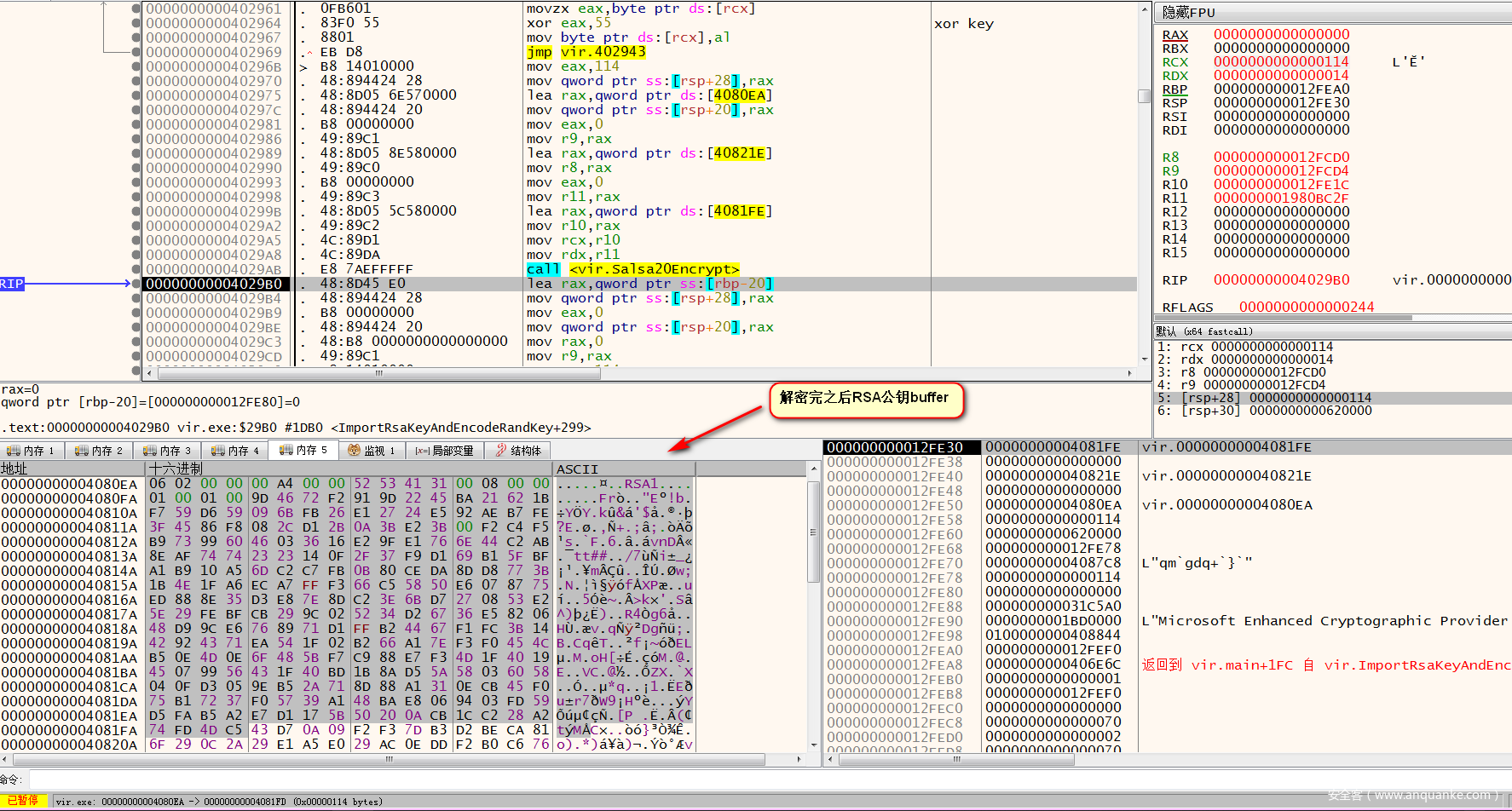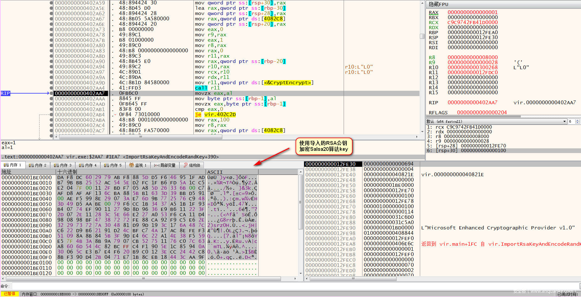 导入刚才解密的RSA公钥并对之前用来加密导出RSA私钥的Salsa20算法key进行加密