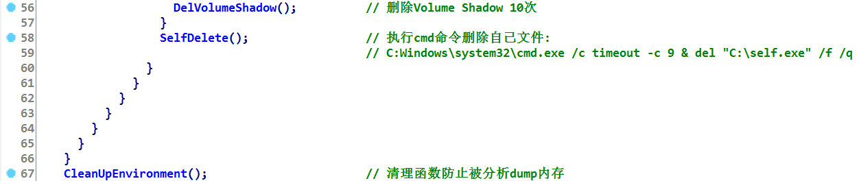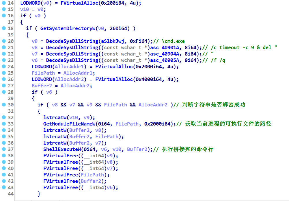 SelfDelete函数内部,延迟9秒删除自身文件为了后续清空自身内存留时间