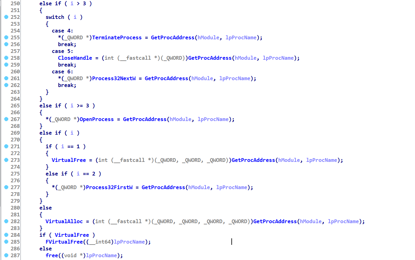 获取完函数地址之后判断29个函数地址是否都获取成功如果有任何一个函数获取不成功退出进行清理流程