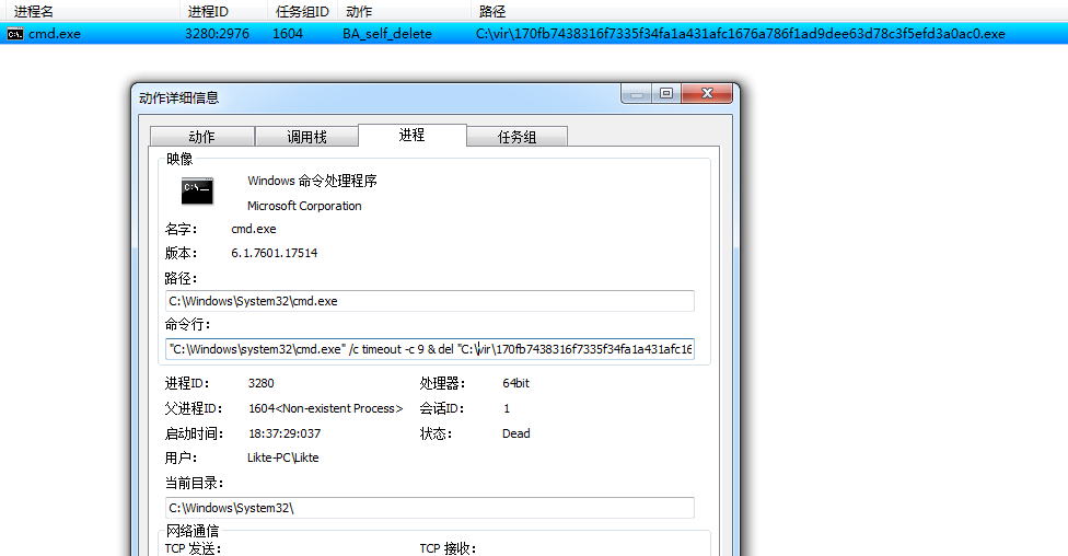 C:Windowssystem32cmd.exe /c timeout -c 9 & del C:virself.exe /f /q