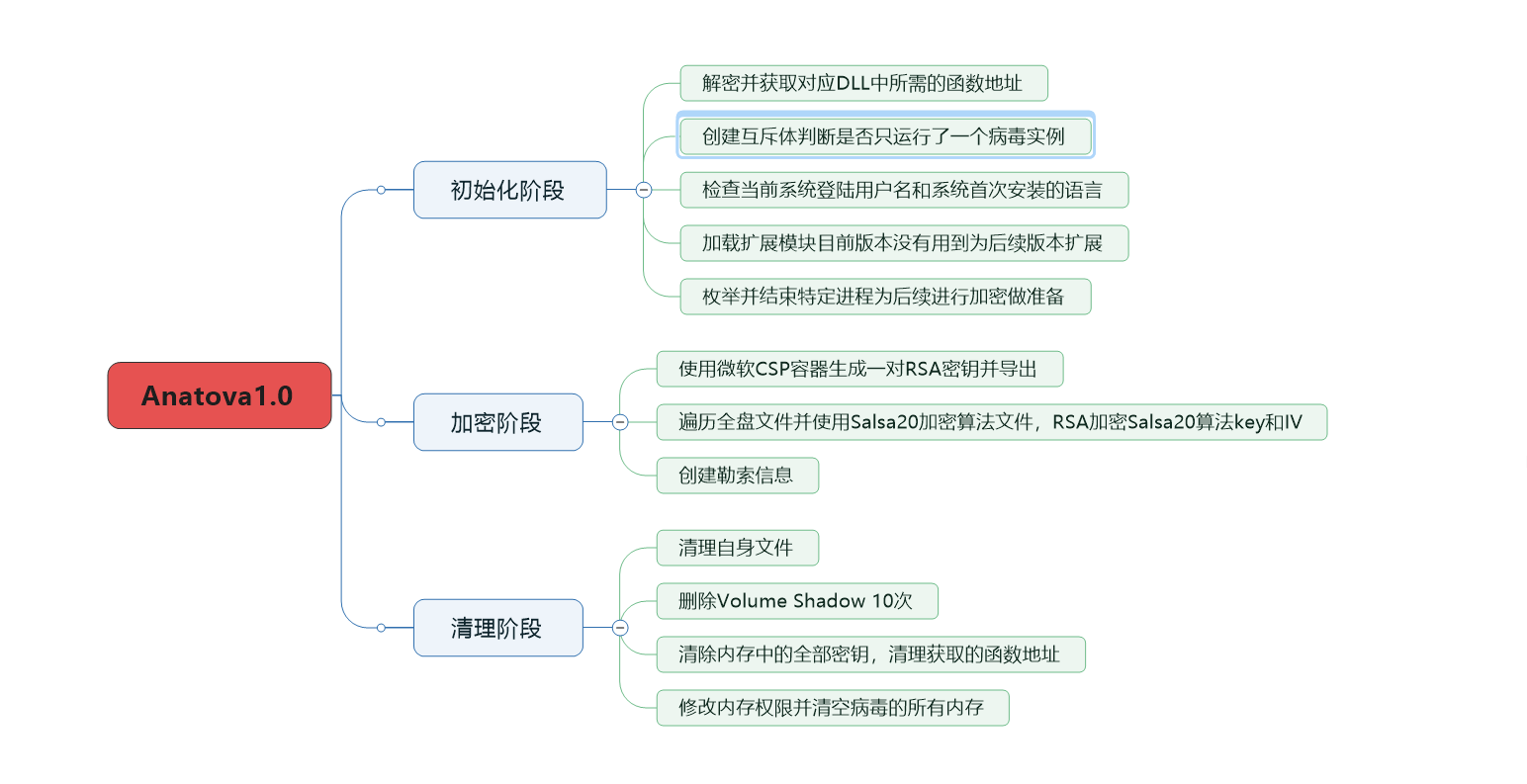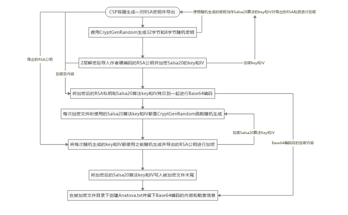 遍历全盘文件进行加密并在加密成功路径下留下ANATOVA.txt勒索信息