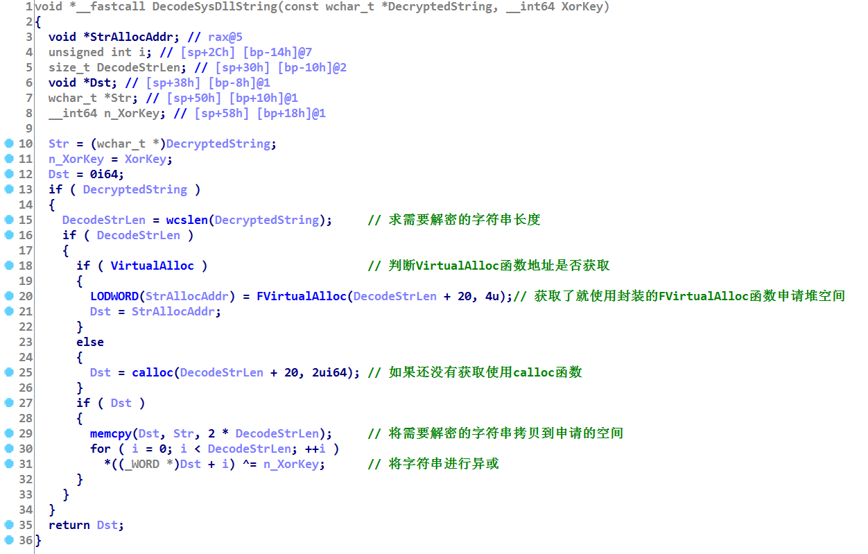 此图为DecodeSysDllString函数内部逻辑,函数功能已经逐行注释了