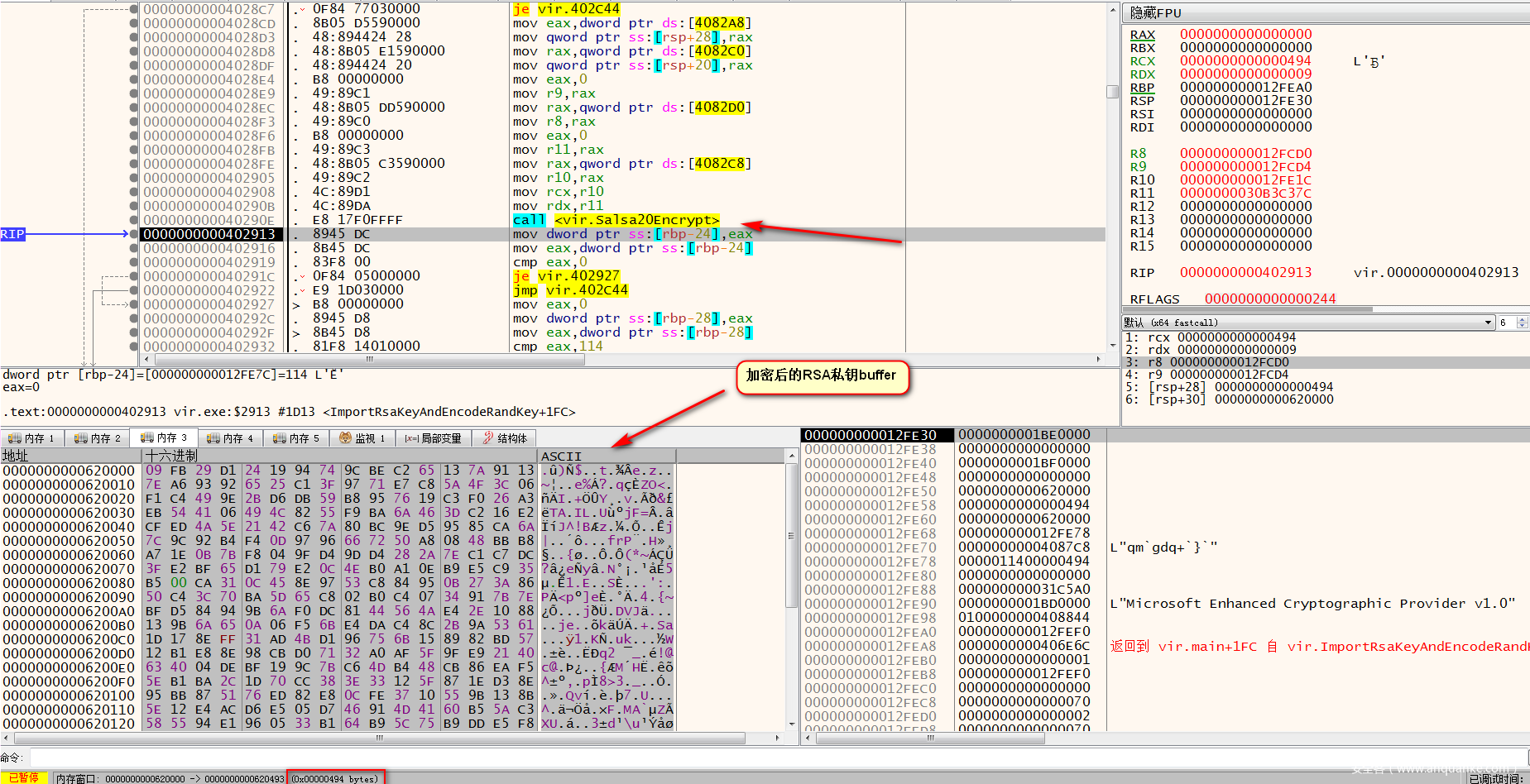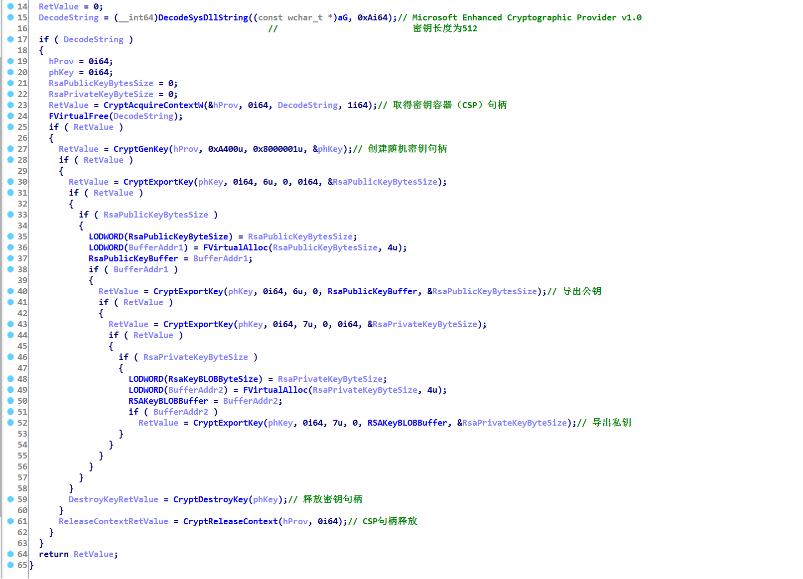 接下来分析ImportRsaKeyAndEncodeRandKey函数,先使用IDA查看大概的函数逻辑,稍后我会进行动态调式
