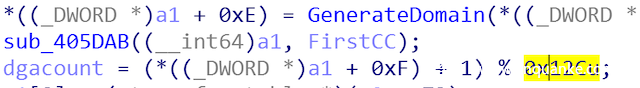 185.244.149.73:443 - 每隔73秒尝试和DGA (Domain Generation Algorithm) 生成的域名建立通信。当DGA域名数达到300时,Seed会重置,所以DGA域名总数只有300。