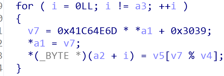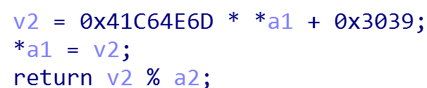 uint32_t tmp = 0x41C64E6D * seed + 0x3039;