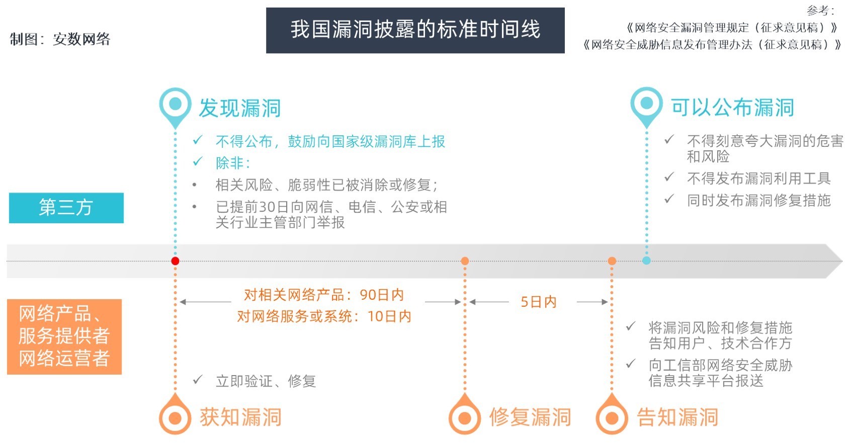 在我国,对于公布网络安全漏洞、发布网络安全威胁信息,都有明确的时间规定(目前在征求意见阶段)。