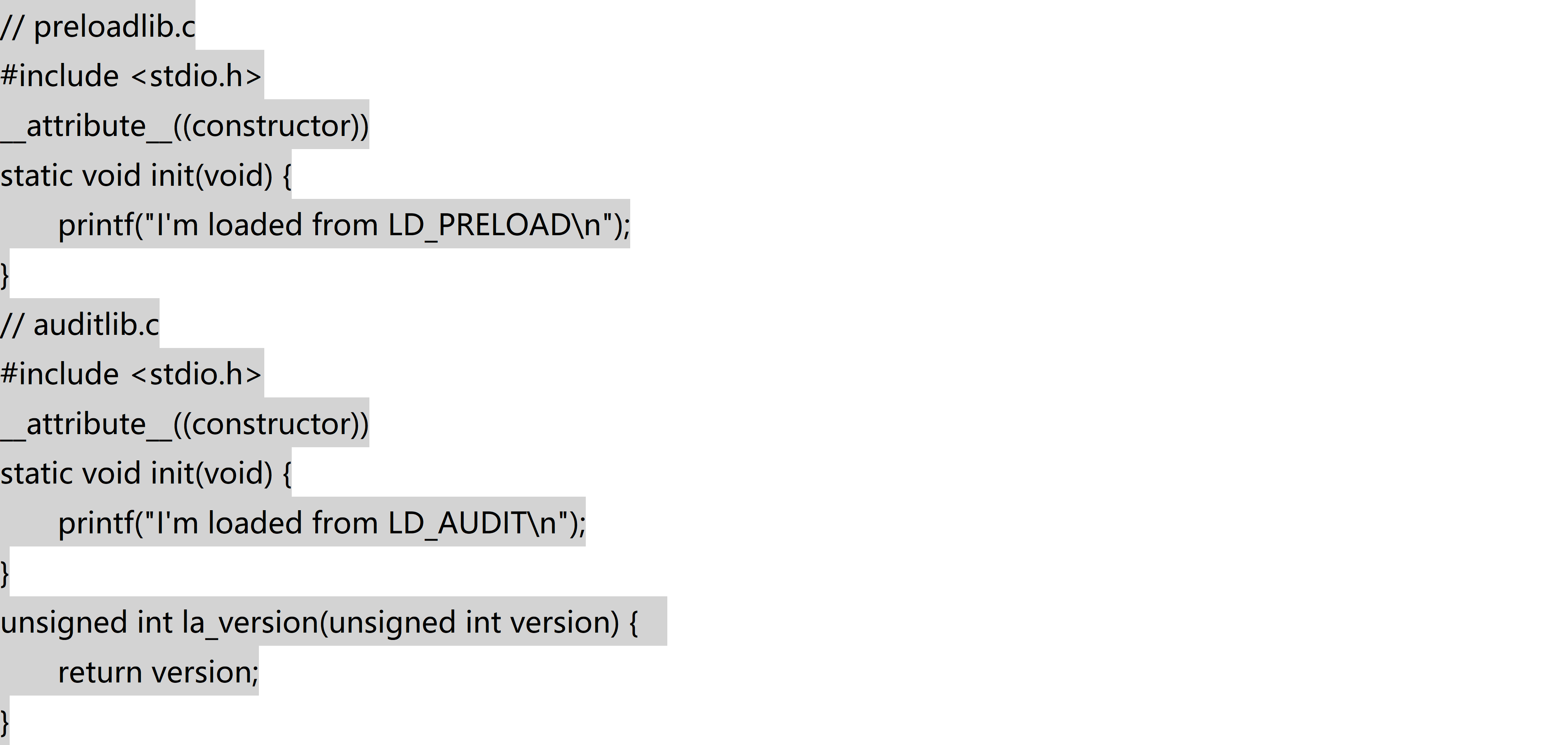 首先我们验证下 LDPRELOAD、LDAUDIT 的加载顺序。
