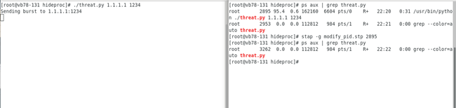 执行恶意进程,获取其进程 pid 为 2895,运行脚本后可以看到进程已经被隐藏了。