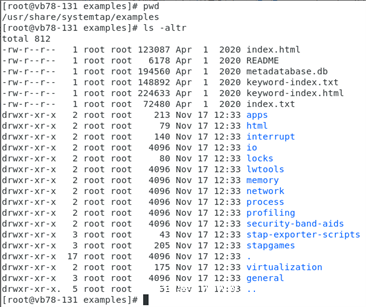安装 stap 后默认会在路径 /usr/share/systemtap/examples/ 下存储一些非常实用的脚本。例如 network- 目录下脚本主要查看系统中每个进程的网络传输情况,io 目录下的脚本主要查看进程对磁盘的读写情况。