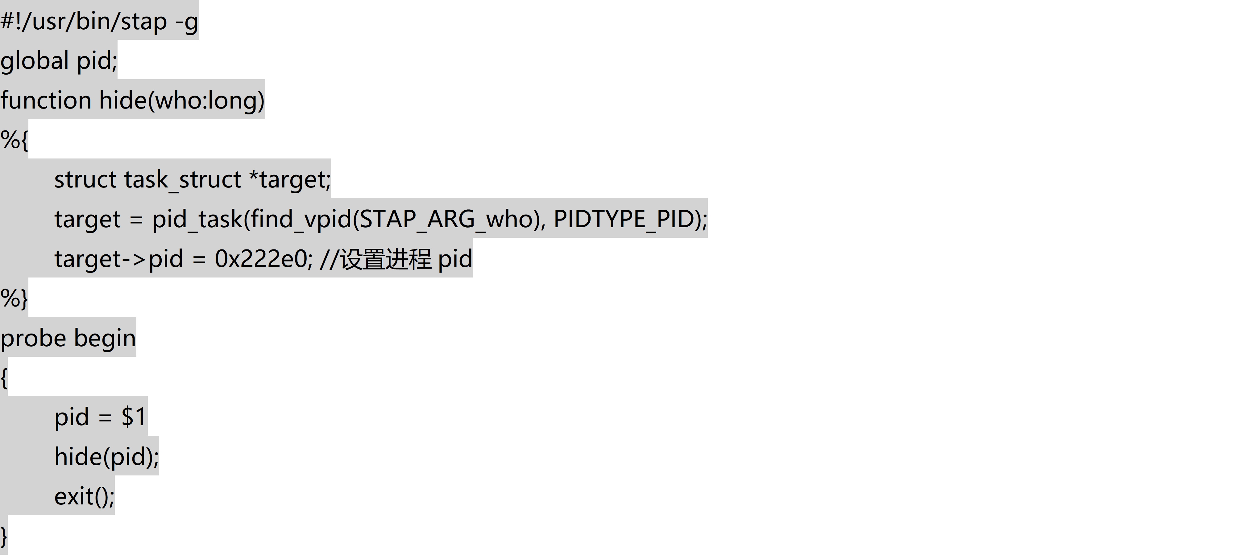 测试使用的脚本名为 processhider.c,下载地址如下: