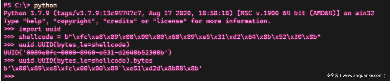 然后我们来利用uuid写shellcode
