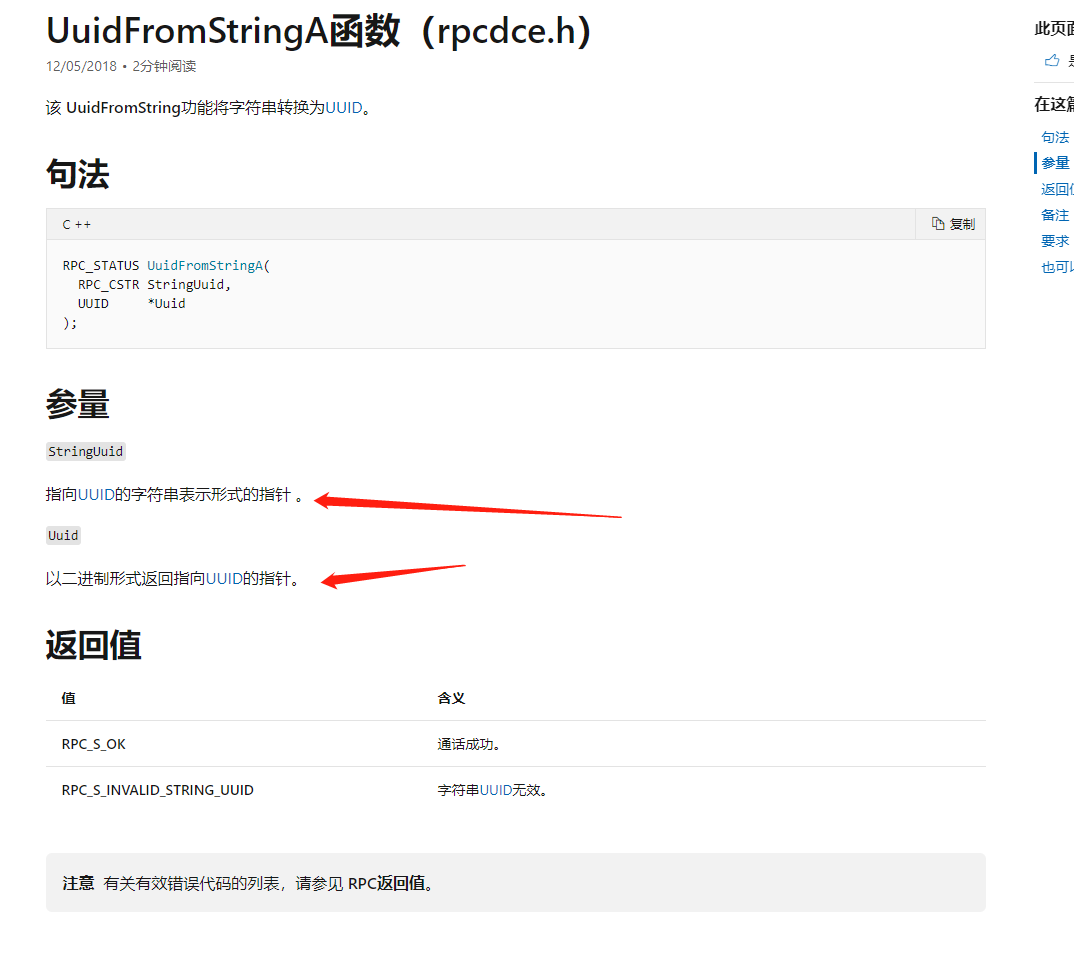 RPC_STATUS status = UuidFromStringA((RPC_CSTR)uuids[i], (UUID*)hptr);//写入shellcode