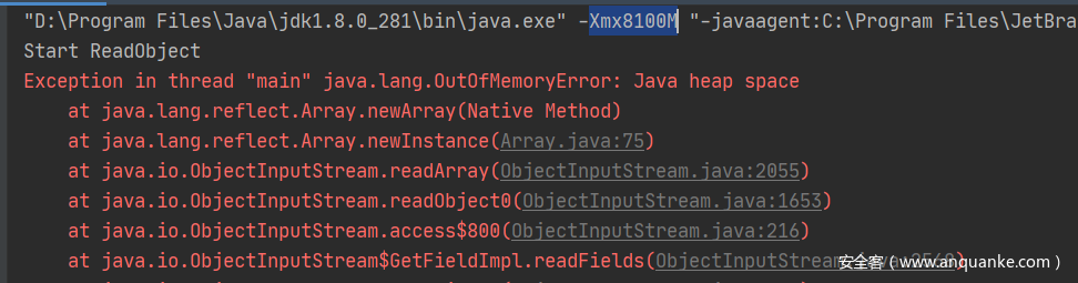 调试时可以看到调用Array.newInstance创建大小为2147483645的数组,单次占用空间大约8GB。