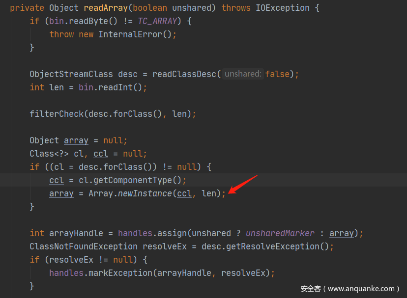 在创建好指定长度的数组实例后,就会开始依次从流中读取数组中所存储的对象。