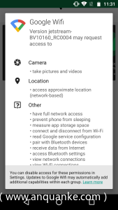Google Play安装期间和应用程序运行期间的权限提示截图如下: