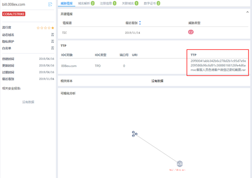 在对域名bill.008ex.com解析的IP: 192.52.167.189进行关联分析的过程中;