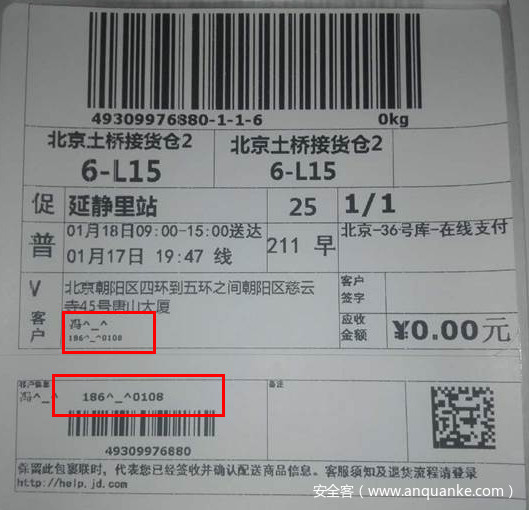 2016年末,京东就已开始试行“微笑面单”,包裹生成时用技术手段部分隐藏用户的姓名(只显示姓)和手机号(中间四位隐藏)信息,以萌萌的笑脸代替,以达到保护用户隐私的作用。