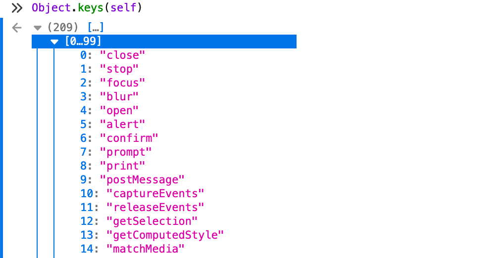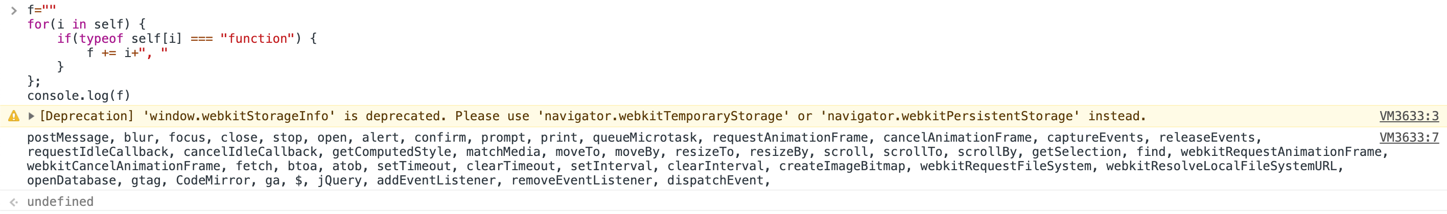 为了枚举出self对象中的所有函数,我们可以使用循环来遍历self对象,并使用条件语句typeof elm === “function”来判断目标元素是否为一个函数: