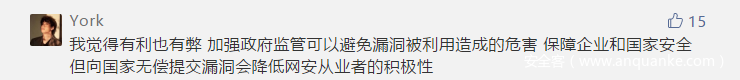 也有一部分白帽子认为会降低安全人员挖掘漏洞的积极性。或者使一些 “灰帽子” 转型成为 “黑帽子” 。但绝大多数白帽子都有足够高的法律意识,鱼与熊掌不可兼得,如果有更好的方案和办法,工信部正在征集修改意见,大家可以积极反馈~